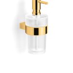 - pojemnik na mydło w płynie wykonany ze szkła matowego, osadzony w uchwycie za pomocą uszczelki z tworzywa,